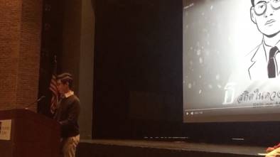 'น้องมาวิน' เด็กชายสายเลือดไทย วัย14ปี กล่าวสดุดี พร้อมเล่าพระราชประวัติในหลวง ร.9 ต่อหน้าอาจารย์ - เพื่อนนักเรียน Kingswood Oxford School ที่มลรัฐ Connecticut พร้อมเล่นเปียโน-สีไวโอลิน ถวายความอาลัย เสียงปรบมือกระหึ่มฮอลล์