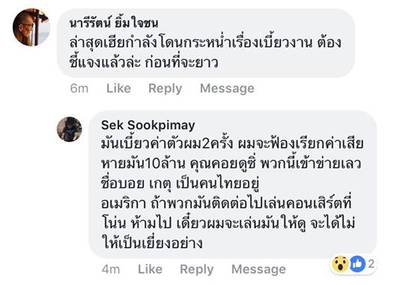 ขณะเดียวกันทางด้าน “เสก โลโซ” ได้ออกมาโพสต์ภาพบทสนทนาของเขาโดยบอกว่า "มันเบี้ยวค่าตัวผม 2 ครั้ง ผมจะฟ้องเรียกค่าเสียหายมัน 10 ล้าน คุณคอยดู พวกนี้เข้าข่ายเลว ชื่อบอย เกตุ เป็นคนไทยอยู่อเมริกา ถ้าพวกมันติดต่อไปเล่นคอนเสิร์ตที่โน่น ห้ามไป เดี๋ยวผมจะเล่นให้ดู จะได้ไม่ให้เป็นเยี่ยงอย่าง"