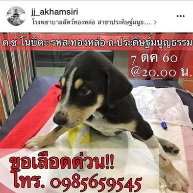 “เคสล่าสุดคือน้องโนบิตะ เป็นหมาข้างทางอยู่หน้าออฟฟิศของพี่ชายแล้วมันโดนรถชน เราก็เลยช่วยไว้เพราะไม่มีใครทำอะไรเป็น ทุกคนตกใจไม่รู้จะทำยังไง เพราะปกติหมาโดนรถชนมันจะมีเลือดออก แต่ด้วยความที่เราช่วยมาเยอะเรารู้ว่าตัวนี้ไม่มีเลือดออก และเป็นหมาเด็กเพิ่งอายุ 3 เดือน ขาลากเลย จั่นรู้เลยว่าน่าจะเลือดออกข้างในช่องท้องหรือมีอวัยวะอะไรที่อันตราย ซึ่งก็จริงๆ ถ้าเราไปถึงโรงพยาบาลช้ากว่านี้เขาอาจตายได้ เพราะกระดูกสะโพกหลุดออกมาจากเบ้าและหักด้วย ขาขวาก็หักอีก ด้วยความที่เป็นน้องหมาจรจัดก็มีเห็บหมัดเยอะ มีพยาธิเม็ดเลือด การที่จะได้รับการผ่าตัดทันทีเลยยังทำไม่ได้ ก็เลยต้องได้รับการรักษาเบื้องต้น ใส่เฝือกอ่อนเพื่อพยุงก่อน และรักษาเรื่องเห็บหมัดเพื่อที่เขาจะได้รับการรักษาต่อได้”