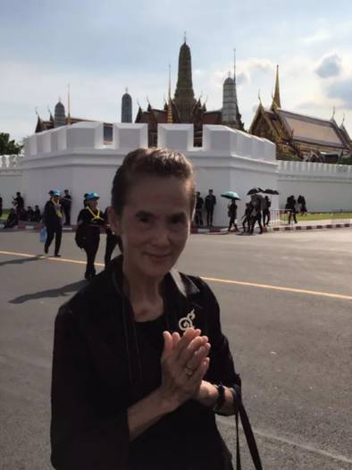หลังจากมีประกาศให้เข้ากราบพระบรมศพได้ ป้าก็ดำเนินเรื่องเพื่อจะกลับมาเมืองไทย แต่พาสปอร์ต วีซ่าอะไรก็ติดขัดไปหมด เราก็คิดว่าจะไม่ได้มาแน่นอน เดินเรื่องนานเป็นปีก็ยังไม่ได้ ก็เลยขอพรพระองค์ท่านว่า ขอพระบารมีขององค์ท่านให้เราได้กลับมากราบท่านให้ได้ หลังจากนั้นเพียง 2 สัปดาห์ เราก็ได้รับข่าวดีว่าเราจะได้กลับมาเมืองไทย