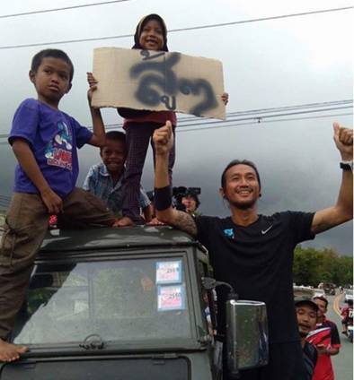 เป็นที่รู้กันดีว่า การวิ่งช่วงเบตงถึงบันนังสตา ต้องผ่านพื้นที่สีแดง ซึ่งปกติไม่กล้ามีใครยืนอยู่นานๆ จากที่ทุกคนหวาดกลัว ความรู้สึกนั้นค่อยๆ จางหาย ในวันที่ผู้ชายร่างบางวิ่งผ่าน เราต่างได้เห็น พี่ป้าน้าอา ออกจากบ้านมารอเขา เพื่อช่วยสมทบทุน รอจับมือ โอบกอดด้วยความรักและชื่นชม ลูกเล็กเด็กแดง ส่งเสียงเชียร์ “พี่ตูนสู้ๆๆ พี่ตูนสู้ๆๆ” ดังลั่นตลอดทาง ทุกคนปราศจากความกลัว มีแต่รอยยิ้มและคราบน้ำตาแห่งความตื้นตัน หัวใจพองโตทั้งคนวิ่งและคนเชียร์