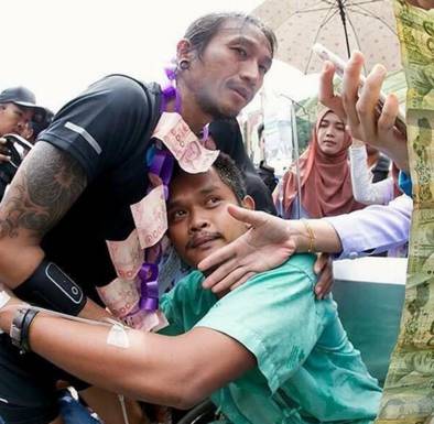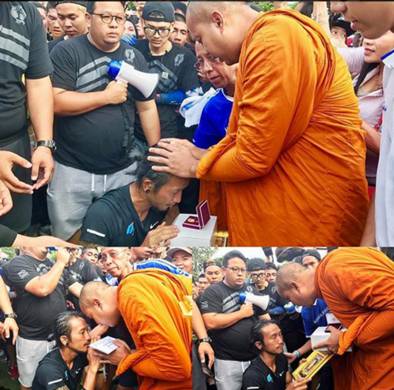 การแสดงออกด้วยความเคารพต่อนักบวช ภิกษุ ที่มารออนุโมทนาบุญกับพี่ตูนด้วย เป็นภาพที่น่าประทับใจต่อผู้พบเห็นเช่นกัน