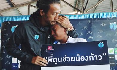 นอกจากจะวิ่งเพื่อระดมทุน โครงการ ก้าวคนละก้าวเพื่อ 11 โรงพยาบาลทั่วประเทศ ของพี่ตูน ยังมอบทุนการศึกษาให้กับน้องๆ ที่ขาดแคลน ในโรงเรียนที่อยู่บนเส้นทางวิ่งกว่า 40 โรงเรียนด้วย