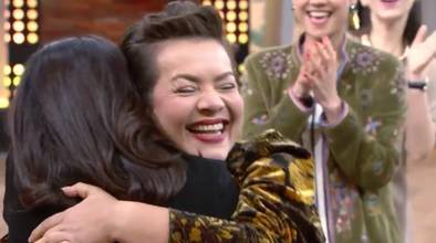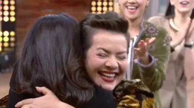ซึ่งหลังจากสวมกอดกัน น้องแหม่ม คัทลียา เอ่ยปากว่าพี่สาวผอมไปเยอะ ซึ่ง พี่หนูแหม่ม ก็บอกว่า "สวัสดีคนกันเอง คนคุ้นเคย"