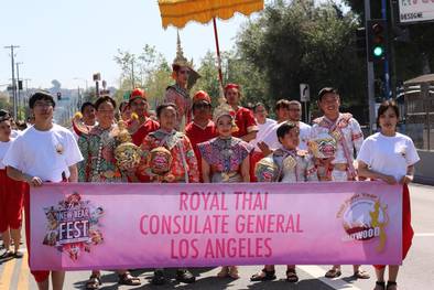 กสสุลใหญ่ธานี แสงรัตน์ และนักการเมืองท้องถิ่นได้เข้าร่วมขบวนพาเหรด ที่มีมาร่วมกันเดินพาเหรดอย่างสง่างาม ที่น่าสนใจเรียกสายตาคนชมตลอดทางได้แก่ขบวนโขน ที่เยาวชนไทยในแคลืฟอร์เนียภาคใต้เกือบ 100 คนมาร่วมเดิน โดยแต่งกายในรูปลักษณ์ต่างๆของโขนไทย สร้างชื่อเสียงให้คนต่างชาติที่เข้ามาชมได้รู้จัก “โขนไทยแลนด์”
