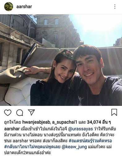 “ไม่นะครับ ปกติก็จะได้เห็นน้องลงรูปคู่กับผมบ้างแล้ว (แต่ครั้งนี้ทั้งเสื้อผ้าเหมือนกัน โมเมนต์หวานๆ มีมากขึ้น เหมือนทุกอย่างชัดเจนแล้ว?) จริงๆ แล้วก็ไม่ได้เอาโมเมนต์หวานๆ อะไรมาออกอยู่แล้วครับ ก็เป็นสิ่งที่เรารู้สึกสนุกและมีความสุขที่ได้ทำอยู่แล้ว ไม่เปิดตัวหรอกครับ ผมว่ามันก็เป็นความรู้สึกที่ชัดเจนของเรามาตั้งแต่ไหนแต่ไรอยู่แล้ว ชัดเจนคือสิ่งที่เป็นอยู่ครับ ทุกวันนี้คือความชัดเจนที่เรารู้สึกว่า เรามีความสุข”