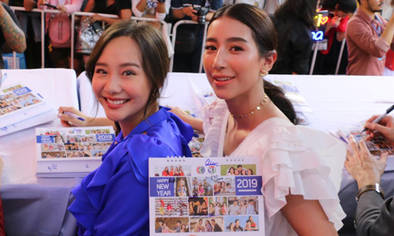งานเซ็นปฏิทินช่องที่ผ่านมา หลายคนพุ่งเป้าไปที่ แมท ภีรนีย์ ซึ่งนั่งแยกระหว่างเรากับมิ้นต์ ชาลิดา ?"เอ่อ...จริงๆ วันนั้นมันอยู่ที่ใครขึ้นมาก่อนก็ได้นั่งก่อนมากกว่า ซึ่งน้องมิ้นต์เขาขึ้นไปตรงกลาง ส่วนเต้ยก็มานั่งต่อจากมิ้นต์ และน้องเก้าเขาก็ขึ้นมาต่อ เขาก็เลยมานั่งข้างเต้ย คือมันเป็นคิวการขึ้นมาบนเวทีมากกว่า ไม่ได้มีการจัดที่แต่อย่างใดค่ะ"