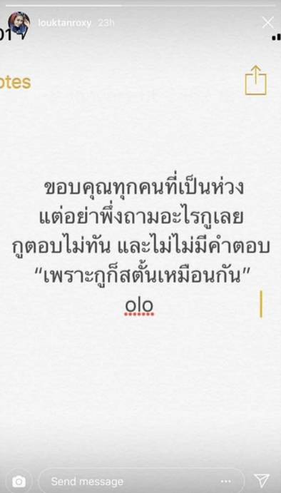 "สำหรับเรื่องที่เป็นประเด็นอยู่ ก่อนอื่นตาลต้องขอโทษทุกๆ คนด้วยค่ะ เรื่องราวทั้งหมดไม่ได้มีอะไรเลย เป็นเพราะอารมณ์ ณ ตอนนั้น และตาลไม่ได้มีเจตนาให้ใครมีปัญหากัน ไม่ได้คาดหวังว่าเรื่องจะมาถึงจุดนี้ ตอนนี้มีคนติดต่อมาถามเยอะมาก ตาลรู้สึกไม่สบายใจมากๆ ตาลขออนุญาตไม่ตอบคำถามใครนะคะ และขอให้เรื่องนี้จบลงตรงนี้ค่ะ