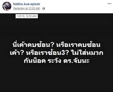 จากนั้น ลูกตาล ก็ได้โพสต์อีกว่า "นี่เขาคบซ้อน หรือเราคบซ้อนเขา หรือเราซ้อน 3" จนแทคเข้ามาบอกว่า "ไปสิ" และทำให้ลูกตาลตอบกลับสั้นๆ ว่า "อย่าใช้อารมณ์" จากนั้นโพสต์นี้ก็ได้ลบออกไป