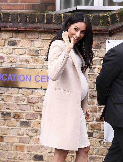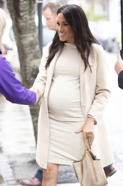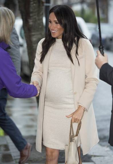 ในส่วนของเครื่องแต่งกายในวันนั้น ดัชเชสเมแกนเลือกสวมเสื้อโค้ทสีครีมผ้าแคชเมียร์จากแบรนด์เอ็มโพริโอ อาร์มานี่ (Emporio Armani) สวมทับเดรสสำหรับผ้หญิงตั้งครรภ์จากแบรนด์เอ็ช แอนด์ เอ็ม (H & M) ราคาเพียง 24 ปอนด์ หรือเพียง 1,000 บาทเท่านั้น
