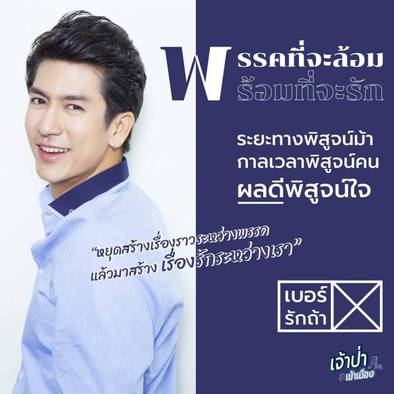 เห็นแล้วก็ขำเหมือนค่ะ เป็นการแสดงออกทางการเมืองของพี่ติ๊กในแง่น่ารักๆ มากกว่าค่ะ คือเขาก็อยากมีส่วนร่วม พี่ติ๊กก็มาถามพีชเหมือนกันว่าเอาพรรคอะไรดี ให้ดูแล้วน่ารัก ดูแล้วขำ อารมณ์อยากดูแลประชาชน เพราะอย่างที่รู้กันว่านี่ก็เป็นการเลือกตั้งครั้งแรก หลังจากที่เราไม่ได้เลือกกันมานานมาก คือเราอยากจะแสดงจุดยืนในแง่ที่ว่า อยากให้ทุกคนเห็นความสำคัญของการเมือง แล้วก็การเลือกตั้งในครั้งนี้ว่ามันไม่ใช่เรื่องเล่นๆ นะ ทุกคนต้องช่วยกันค่ะ