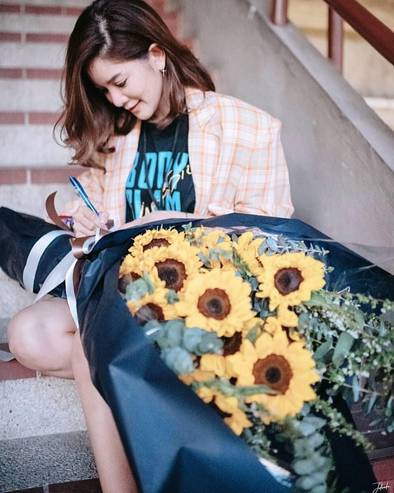 "ส่วนแคปชั่นที่เขียนแซวว่าเขาทำหน้านิ่งๆ ตอนรับดอกไม้ อันนั้นก็คือเขาจะทำหน้านิ่งๆ ตลอด ทั้งหน้าดีใจ หน้าเสียใจ เขาไม่ค่อยแสดงความรู้สึกออกมา แต่เขาก็คงดีใจบ้างแหละเนอะ (หัวเราะ) ถามว่าก้อยชิ้นไหม ชินมากๆ ค่ะ (หัวเราะ) มันเป็นเรื่องตลกไปแล้ว ซึ่งจังหวะนั้นเราเข้าไปด้วยความคาดหวังว่าเขาจะต้องดีใจไง แต่เขาก็จะแบบ เอ่อ...มีดอกไม้ด้วย คือมันเป็นอะไรที่ปกติมากๆ สำหรับเรา"