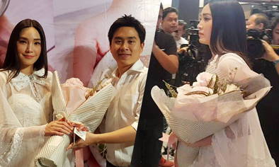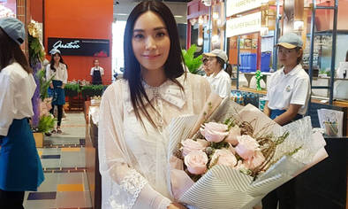 เมย์ พิชญ์นาฏ กับกุหลาบช่อโตกำลังใจที่มอบให้ ไฮโซเอ็ดดี้