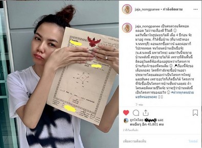 จ๊ะ: ต้องบอกก่อนเลย จ๊ะไม่ได้กลับบ้านมาเป็นอาทิตย์แล้ว เพราะไปทัวร์คอนเสิร์ต ไปถ่ายรายการ แต่เพื่อนอยู่ในโครงการนั้นด้วย ส่งไลน์มา ถามว่ารู้เรื่องในหมู่บ้านหรือยัง แล้วได้คุยกัน จ๊ะก็นึกในใจว่าคงไม่ใช่ของเราหรอก เพราะบ้านเราเป็นชื่อของเราแล้ว เค้าเขียนว่าชื่อหมู่บ้านหนูแต่เป็นบางแปลง ก็คิดว่าคงไม่ใช่ของเราแน่นอน คงเป็นแปลงที่เค้าส่งกับธนาคารอยู่หรือเปล่า แต่ตอนนี้คนที่จะซื้อบ้านต่อจากหนูเป็นน้องที่รู้จักกันโทรมาบอกว่าธนาคารไม่อนุมัติเพราะที่ดินผืนนี้มีปัญหา หนูก็เลยเริ่มสงสัยถึงป้ายที่ติดประกาศ หรือน้องมาหลอกเพราะกู้ไม่ผ่านหรือเปล่า หนูก็เลยรอเมื่อวาน (วันจันทร์) ไปติดต่อที่กรมที่ดิน สรุปคือใช่ แปลงเรานี่แหละ และกรมที่ดินก็แจ้งว่าโอนได้นะ แต่ต้องแจ้งว่าตอนนี้ที่ดินตรงนี้มีคดีอยู่ ซึ่งหนูแจ้งน้องเค้าก็ไม่เอาแล้ว และธนาคารไม่อนุมัติด้วย น้องเค้าจะเอาเงินที่ไหนมาซื้อมาเชื่อใจซื้อละ รวมถึงเพื่อนบ้านที่ต้องการรีไฟแนนซ์ก็ไม่สามารถรีไฟแนนซ์ได้ จากตอนแรกคนคิดว่ามีปัญหาแต่บ้านจ๊ะหลังเดียว แต่ตอนนี้เป็นทั้งหมด