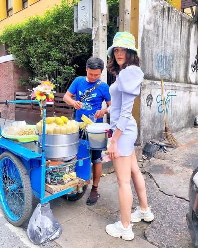 ล่าสุดเมื่อสาวชมใส่ชุดเดรสสีฟ้าหวานๆ จากแบรนด์ดัง la boutique กับหมวก Bucket สีหวานหลากสี ไปซื้อข้าวโพดต้มจากรถเข็นริมทาง ทำเอาหลายคนอึ้งเบาๆ เพราะปกติเวลาไปเดินเล่นบนถนนส่วนใหญ่จะใส่เสื้อยืดกางเกงยีนส์สบายๆ แต่คงไม่ใช่กับสาวชมที่ขึ้นชื่อเป็นแฟชั่นนิสต้าตัวแม่คนหนึ่งของเมืองไทยแน่ๆ