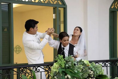 ฉากนี้ถือเป็นการรวมตัวนักแสดงทั้งเรื่องมาไว้ด้วยกัน เมื่อคนเยอะการถ่ายทำก็ยาก ฉากเดียวถ่ายเช้ายันดึกดื่น แต่บรรยากาศก็สนุกสนานเหมือนงานเลี้ยงรุ่น เมื่อทุกคนแต่งตัวกันเสร็จ ผกก. กอล์ฟ-ธัญญ์วาริน ก็เรียกทุกคนมาต่อบทวางบล็อกกิ้ง ซ้อมคิวบู๊ เพื่อความปลอดภัยและให้การทำงานราบรื่นจึงต้องใช้เวลานานเป็นพิเศษ เมื่อทุกอย่างพร้อมก็เดินกล้องทันที เริ่มที่บ่าวสาวเดินตรงเข้าไปหาบาทหลวง ขณะที่พิธีกำลังเริ่ม พี่เปิ้ล ก็ปรากฏตัวบนชั้น 2 และตะโกนบอกว่าได้วางระเบิดไว้เรียบร้อยแล้ว แต่แผนการที่คิดว่าดีแล้วกลับพบว่างานวิวาห์ครั้งนี้เป็นหลุมพราง
