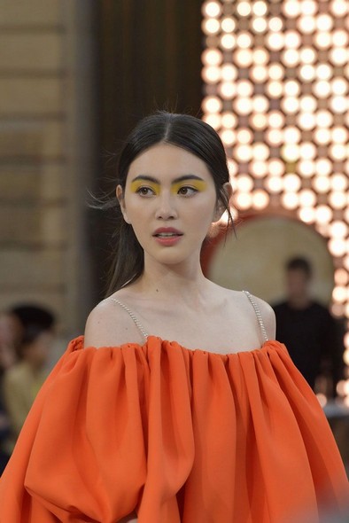 ก่อนที่สาวใหม่จะปรากฏตัวออกมาในชุดเดรสสีส้มสดทรงบอลลูนจากดีไซเนอร์รุ่นใหม่ไฟแรงอย่าง Nicolas Lecourt Mansion แมทกับเมคอัพลุค Orange Symphonyโดดเด่นสะดุดทุกสายตากับดวงตากลมโตที่มาพร้อมสีสันสดใสด้วย Lash Paradise + Brow Xpert เผยผิวนวลเนียนด้วยรองพื้น Infallible More than concealer 308 + Infallible Promatte 100 คอมพลีทเมคอัพลุคด้วยเรียวปากอวบอิ่มดูสวยธรรมชาติสไตล์สาวปารีเซียนด้วย Rouge Signature 113I Don’t + 114I Represent
