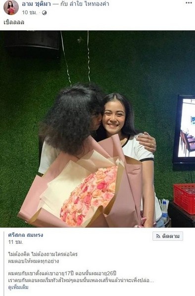 ท่ามกลางกระแสทั้งบวกและลบ เพื่อนซี้ ลำไย อย่าง นักร้องนักเขียนเพลงฝีมือดี อาม ชุติมา ก็เข้ามาแท็กเฟซบุ๊กถึงเพื่อน พร้อมแคปชั่นสั้นๆ “เขิลอ่าาาาา”
