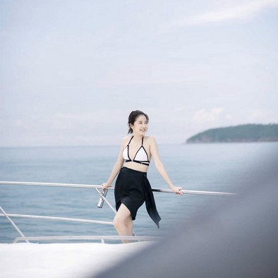 ล่าสุดไปเที่ยวทะเลมา?“พัทยาค่ะ ไปซ้อมแข่งรถ ไปถ่ายงาน แล้วก็ไปล่องเรือกับทีมงาน เราไปในโซนนั้นก็เลยถือโอกาสได้ไปเที่ยวด้วย ไป 20 กว่าคน แก๊งเพื่อนด้วย แก๊งรุ่นพี่ด้วย”