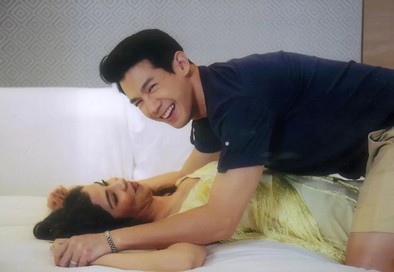 เมื่อเริ่มถ่ายจริง จีน่า คว้ามือ ณัฏฐ์ แล้วดึงมาที่เตียง ณัฏฐ์ อยากกลับห้องเพราะเกรงใจเมียแต่อีกใจก็ลังเล พอ จีน่า ออกแรงดึง ณัฏฐ์ จึงหันกลับไป จีน่า จึงเอนตัวลงนอนพร้อมกับดึง ณัฏฐ์ ลงมาคร่อมอยู่บนตัว ณัฏฐ์ อยากจะปล้ำแต่อีกใจก็อยากเป็นคนดี แต่พอโดน จีน่า พูดเชิญชวนว่าอย่าหยุดสิเท่านั้นแหละ ตบะแตกทันที ณัฏฐ์ ก้มลงไปจูบและกอดฟัดนัวเนีย