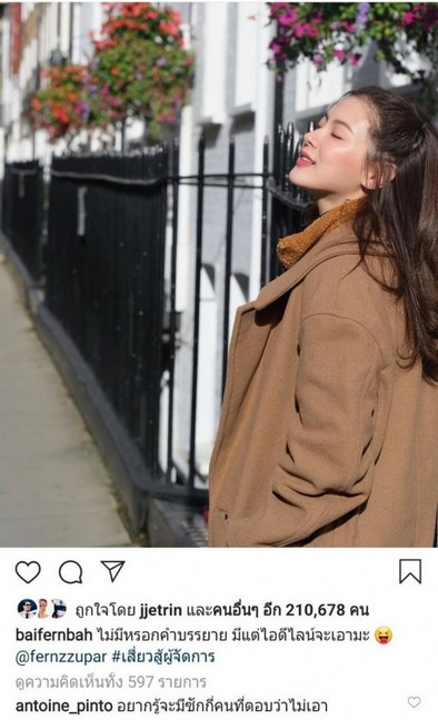 เคลียร์ความสัมพันธ์กับ "อองตวน""หัวใจไม่ได้สีชมพูนะคะ ส่วนเรื่องอองตวน เฟิร์นพูดเลยว่าเฟิร์นไม่เคยรู้จัก ไม่เคยคุย แล้วก็ไม่ได้ฟอลโลว์เขาด้วยซ้ำ ตอนแรกงงค่ะ ว่ามาจากไหน เกิดอะไรขึ้น เฟิร์นไม่เคยไปคอมเมนต์ค่ะ เฟิร์นไม่ได้รู้จักเป็นการส่วนตัวด้วย"
