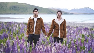 ภาพจับมือกันกลางทุ่งดอกไม้ จะเก็บไว้เป็นพรีเวดดิ้งไหม นางเอกสาวกล่าวว่า “ไม่ขนาดนั้นค่ะ แต่ก็แชร์กัน เพราะใหม่ชอบ สถานที่สวยมากเลยแชร์ค่ะ”