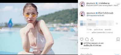 โดยสาวต้นหอมได้ใส่บิกินีและเสื้อเว้าลึก พร้อมโพสต์แคปชั่นว่า “ที่นี่เค้าวิวดีจริงๆนะฮ๊ะ” โดยเป็นภาพสาวต้นหอมนั่งริมสระว่ายน้ำโรงแรม และมีอีกรูปที่พีคสุดๆ โดยเป็นรูปไม่โฟกัสใบหน้าต้นหอม แต่ไปโฟกัสยังสองหนุ่มฝรั่งที่อยู่ริมสระด้านหลัง