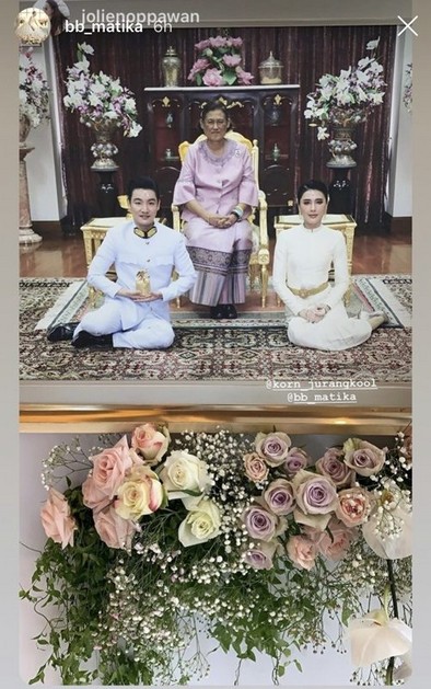 แถมมีช็อตเพื่อนๆ เจ้าสาว กรี๊ด ซองแดงสะพัด อดีตนางเอก บี มาติกา เข้าพิธีหมั้นหมายตามประเพณี ก่อนหน้านี้ เพิ่งไปรับพระราชทานน้ำสังข์ ท่ามกลางเพื่อนเจ้าบ่าวเจ้าสาวทีมใหญ่ ร่วมยินดี