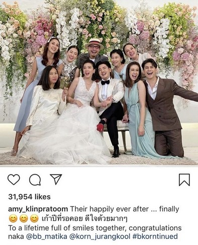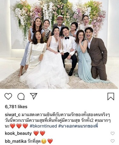 ขณะที่ เพื่อนสนิทคนบันเทิง ก็ตบเท้ามาร่วมงานสำคัญ อาทิ นุ่น วรนุช , ซี ศิวัฒน์ ยินดีกับนางเอกคนแรกของตัวเอง ด้าน เอมี่ กลิ่นประทุม ก็ร่วมยินดี 9 ปีที่รอคอยของคนทั้งคู่