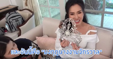 หลังจากที่เยี่ยมชมบ้านคุณย่าจนหนำใจ ก็ถึงเวลาที่คุณย่าจะอวดมงกุฎจาก 2 เวที คือ เวทีนางสาวไทยและนางงามจักรวาลให้ลูกหลานได้เห็นเป็นบุญตา ซึ่งหนุ่มป๊อกก็ใส่มงกุฎของคุณแม่ทั้ง 2 อันพร้อมโบกมือโบกไม้แบบนางงามโชว์อีกด้วย ก่อนที่หนุ่มป๊อกจะโชว์รอยสักด้านหลังที่เจ้าตัวสักรูปคุณแม่ใส่มงกุฎให้แฟนๆ ได้เห็นอีกด้วย.