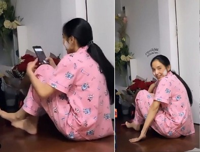 โดย นาฟ ถ่ายคลิป ช่อกุหลาบแดง ที่สาวแพทนำมาที่บ้าน พร้อมถาม แพท ว่า “ของใครอ่ะ ผู้ชายให้ป่ะเนี่ย เอาดีๆ” โดยแฟนๆ เข้ามาคอมเมนต์ บ้างก็บอกว่า ไม่แต่งหน้าแม่แพทก็สวย หน้าเด็กมาก พร้อมคาดเดาว่า ดอกไม้ช่อนี้เป็นของใครกันแน่ ลองไปฟัง แพท จะตอบว่าอย่างไร