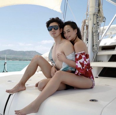 ซึ่งเป็นภาพที่ทั้งตนเองและฟิล์ม ใส่ชุดว่ายน้ำนั่งอยู่บนเรือยอร์ช พร้อมเขียนแคปชั่นว่า “Don’t flirt with my man!!! มาเที่ยวขอสวีทนิดนะคะ #บีฟิล์ม #ฝากละครเราด้วย #ฉันชื่อบุษบา เร็วๆนี้ "