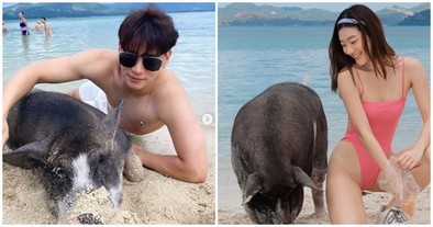 รูปนั้นถ่ายให้เขาเองไหม"ผมถ่ายเอง ก่อนเขาจะลงผมบอกเขาเลยว่าลงก็ลงไปเลยครับ ก่อนที่เขารู้จักผมเขาเป็นแบบนี้อยู่แล้ว ชอบแต่งตัว ผมว่าอย่าไปโฟกัสชุดว่ายน้ำเลย ลองดูทุกรูปในไอจีเขาซิ เขาค่อนข้างเป็นฝรั่ง ใส่เสื้อขายแบรนด์เป็นงานของเขา"