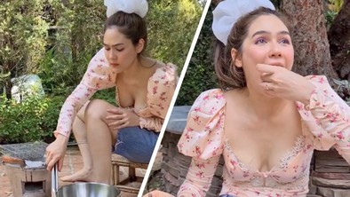 และล่าสุด สาวชมพู่ก็โพสต์คลิปปูเสื่อย่างเนื้อกินกันที่บ้าน โดยสาวชมเป็นคนลงมือนั่งย่างเนื้อด้วยตัวเอง ถึงในคลิปจะไม่ได้กลิ่นของเนื้อย่าง แต่บอกเลยว่าคงจะหอมฟุ้งน่ากินสุดๆ ไปเลย
