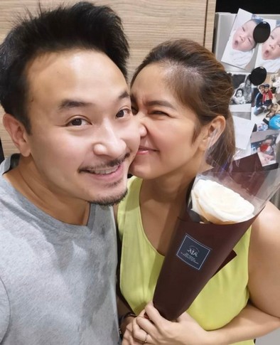 "16 ปีที่แล้ววันนี้ผมขอผู้หญิงคนนี้เป็นแฟนครับ ใครจะไปคิดว่าผมตัดสินใจถูกทุกอย่างที่เลือกคนคนนี้เป็นคู่ชีวิตเป็นแม่ที่น่ารักของลูกๆ และเป็นภรรยาที่ดีที่สุดของผมในแบบฉบับของเรา และวันนี้เมื่อ 6 ปีที่แล้วก็คืองานเลี้ยงฉลองงานแต่งงานเรา I love you baby. You are my better half and you truly complete me baby."