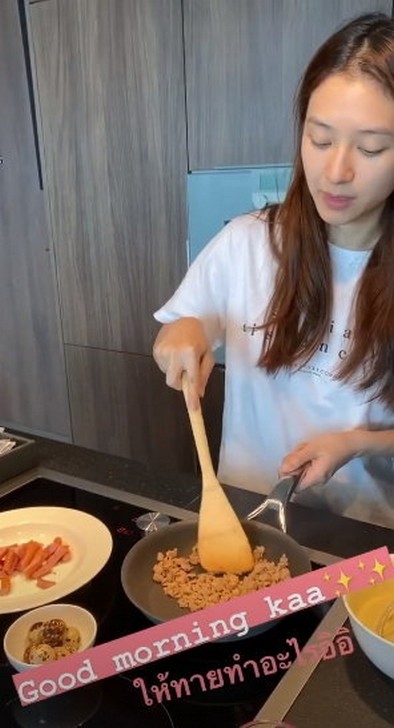 และภาพล่าสุดของ มิว นางเอกสุดสวยที่บอกเลยว่าเป็นภาพน่ารักมากๆ ไม่แปลกที่ เซนต์ สามีจะตกหลุมรักทุกวัน กับภาพการทำขนมโตเกียวในตอนเช้าของเธอ วัตถุดิบบนโต๊ที่จัดเรียงรายได้สดใหม่หมด แต่ก็ยังแพ้หน้าสดแต่สวยมากของ มิว ที่บอกเลยว่าเป๊ะมากแม้ไร้เครื่องสำอางค์ ในส่วนของผมที่ยาวสลวยแม้จะยังดูยุ่งเหยิงไปบ้าง แต่ก็ไม่ได้ทำให้ความน่ารักของเธอดูดรอปลงไปนะจ๊ะ