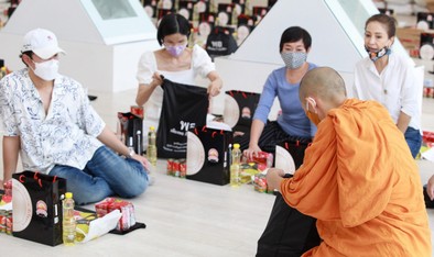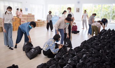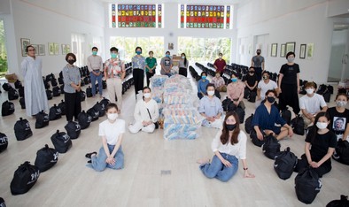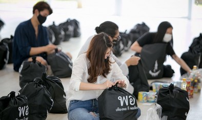 มูลนิธิหอธรรมพระบารมี ศูนย์การเจริญสติและหอศิลป์ร่วมสมัย รวมพลังคนบันเทิงเบื้องหน้าและเบื้องหลัง บรรจุถุงยังชีพ ตามโครงการมอบถุงยังชีพ บรรเทาความเดือดร้อนแก่ผู้ได้รับผลกระทบจากโควิค- 19 ตามพระราชดำริ สมเด็จพระอริยวงศาคตญาณ สังฆราช สกลมหาสังฆปรินายก