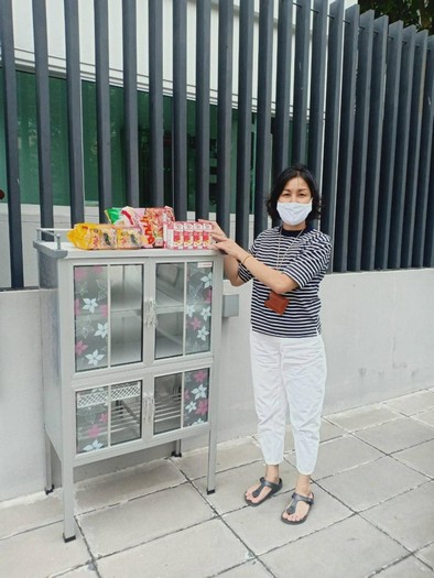 โดยทำไว้ที่หน้าบ้าน วันแรกที่ตั้งตู้ดีใจมากครับ เพราะแค่ตั้งตู้ยังไม่ทันเสร็จ มีคนมารอช่วยเอาของมาบริจาคใส่ตู้ และหลังจากนั้นก็จะสังเกตเห็นว่ามีเห็นคนมาหยิบไปคนละ2-3ชิ้น ไม่ขาดสาย เราก็อิ่มใจครับ ผมก็จะคอยเติมตู้เรื่อยๆ แต่ที่ยิ่งที่ยิ่งปลื้มใจไปมากกว่านั้น คือมีคนมาช่วยเติมตู้หน้าบ้านผมเรื่อยๆเช่นกัน ถ้าถามว่ามีคนมากวาดเหมาหมดตู้เหมือนในขาวไหม ก็ต้องบอกว่ามีบ้างครับ แต่ก็ให้พ่อบ้านแม่บ้านคอยช่วยดูแลตักเตือนและขอความร่วมมือ และหน้าบ้านผมมีกล้องวงจรปิด ก็ช่วยได้ระดับหนึ่งครับ ใครลำบากเดือดร้อน มาแถวนี้ก็มารับของจากตู้ได้ครับ แต่ขอให้หยิบแต่พอดี เหลือแบ่งปันให้คนข้างหลังบ้าง และท่านใดอยากแบ่งปันก็เอาของมาใส่ตู้ร่วมบุญกันได้นะครับ”