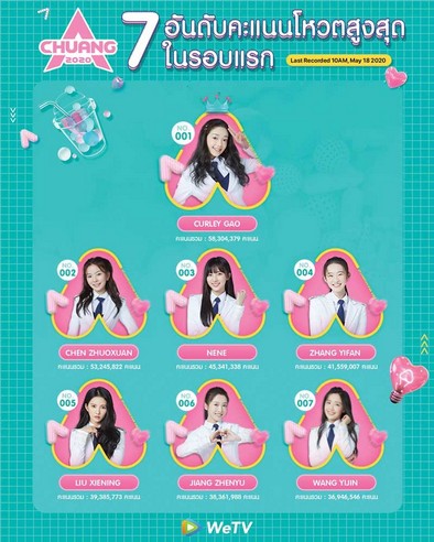 โดยเด็กฝึกที่ได้คะแนนโหวตสูงสุด 7 อันดับแรก ประกอบด้วย อันดับ 1 เคอร์ลี่ เกา (Curley Gao) 58,304,379 คะแนน, อันดับ 2 เฉินจั๋วเสวียน (Chen ZhuoXuan) 53,245,822 คะแนน, อันดับ 3 เนเน่ หรือเจิ้งหน่ายซิน (Zheng Naixin) 45,341,338 คะแนน, อันดับ 4 จางอี้ฝาน (Zhang Yifan) 41,559,007 คะแนน, อันดับ 5 หลิวเซียหนิง(Liu Xiening) 39,385,773 คะแนน, อันดับ 6 เจียงเจินอวี่ (Jiang Zhenyu) 38,361,988 คะแน และอันดับ 7 หวังอี้จิ่น (Wang Yijin) 36,946,456 คะแนน