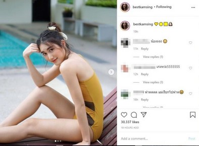 ทั้งยังลงรูปเก่าใส่ชุดว่ายน้ำ พร้อมแคปชั่นฉุนแฮกเกอร์ด้วยว่า “และแฮกเกอร์ก็ไม่ควรลบรูปนี้ เพราะนานๆทีจะใส่” ก่อนจะโพสต์ภาพล่าสุด ในชุดว่ายน้ำ โชว์หุ่นสวย จนเพื่อนๆ และแฟนคลับเข้ามาชมว่า “กลับมาแล้วปังจังเลยค่ะ” ซึ่งสาวเบสท์ก็เข้ามาตอบคอมเมนต์ด้วยว่า “เราต้องคัมแบคแบบไม่ธรรมดา55555” บางคนก็แซวว่า “ฟาดดดด แม่เรียกไปฟาด” เป็นต้น
