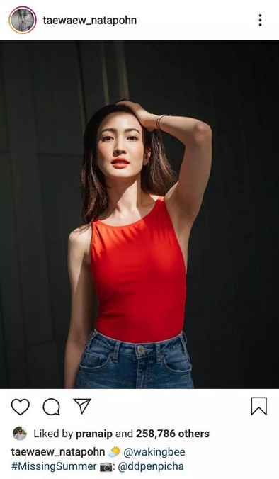 กลายเป็นประเด็นถูกจับตามองอีกแล้ว เมื่อเพจบันเทิงดัง เจ๊มอย 108 โพสต์ภาพนางเอกสาวหน้าแบ๊ว แต้ว ณฐพร เตมีรักษ์ และไฮโซหนุ่ม ณัย ประณัย พรประภา อยู่กับเพื่อนๆ แต่เป็นช็อตจังหวะที่ แต้ว-ไฮโซณัย กำลังมองหน้า สายตาประสานกันพอดี พร้อมทั้งเขียนแคปชั่น “รักแม่.. ใครห้ามแกงแม่ อยากให้แม่มูฟออนแบบมีฟามสุข #อิพิมติ่งเจ้าแม่นาคี”