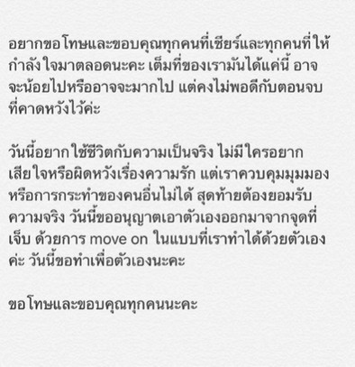 ซึ่งล่าสุดวันที่ 2 สิงหาคม 2563 มารี เบิร์นเนอร์ ได้ออกมาเคลื่อนไหวในอินสตาแกรมส่วนตัว โดยมีการโพสต์ข้อความที่ระบุไว้ว่า "อยากขอโทษและขอบคุณทุกคนที่เชียร์และทุกคนที่ให้กำลังใจมาตลอดนะคะเต็มที่ของเรามันได้แค่นี้ อาจจะน้อยไปหรืออาจจะมากไปแต่คงไม่พอดีกับตอนจบที่คาดหวังไว้ค่ะ วันนี้อยากใช้ชีวิตกับความเป็นจริงไม่มีใครอยากเสียใจหรือผิดหวังเรื่องความรัก