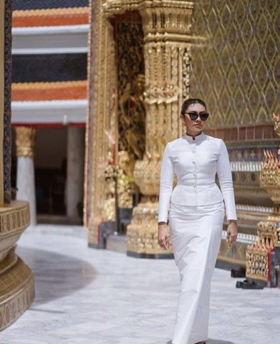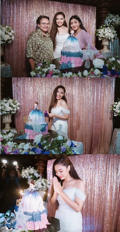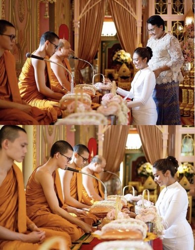 นอกจากการโพสต์รูปเช็ตปาร์ตี้แล้ว แก้ม ยังได้เปิดรูปภาพเซ็ตทำบุญวันเกิด ด้วยชุดไทยสีขาว งามเชิดฉาย สะดุดตามาแต่ไกลเป็นเอามาก
