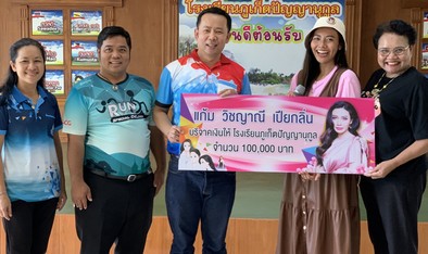 และนำเงินไปทำบุญให้กับ โรงเรียนเด็กพิการภูเก็ตปัญญานุกูล จ.ภูเก็ต เป็นจำนวนเงิน 100,000 บาท พร้อมกับ คุณแม่ญาดา เปียกลิ่น โดยมี คุณสมพร บัวกล่ำธนกิจ รองผู้อำนวยการ เป็นผู้รับมอบ เพื่อนำไปใช้ประโยชน์และพัฒนาทางการศึกษาต่อไป