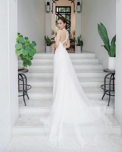 และ “เมื่อแม่ป้อมชวนถ่าย Pre-wedding แบบไม่มีเจ้าบ่าวค่ะ 🤣🤣🤣🤣 แต่งหน้าลุกส์เจ้าสาว เปลี่ยนผมไป 3 แบบ ลองดูว่าชอบลุกส์ไหนกันนะคะ ตามไปดูได้ที่ youtube : ทอดปลานิน ขอบคุณทีมงาน #ทอดปลานิน ที่มาทานข้าวต้มมัดที่บ้านก้อย และเม้าธ์มอยกันสนุกสนานนะคะ” บอกเลยว่าแค่ซ้อมยังสวยขนาดนี้ วันจริงจะสวยออร่าขนาดไหนกันล่ะเนี่ย!!