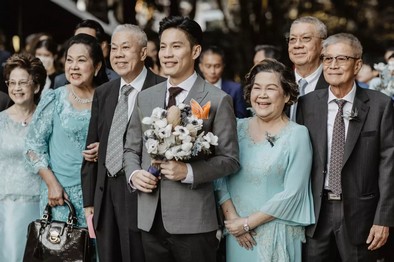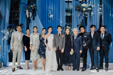 มีครอบครัว ญาติสนิท เพื่อนๆ พี่ๆ ทั้งในและนอกวงการบันเทิงที่เคารพนับถือมาร่วมแสดงความยินดีกับเจ้าบ่าวเจ้าสาวป้ายแดงกันเป็นจำนวนมาก อาทิ คุณนิด อรพรรณ วัชรพล, คุณประวิทย์ มาลีนนท์, พี่ฉอด สายทิพย์, เอ ศุภชัย, หนุ่ม กรรชัย, มดดำ คชาภา, เชอรี่ เข็มอัปสร, วุ้นเส้น วิริฒิพา, คริส หอวัง ฯลฯ บรรยากาศภายในงานมาในธีมไชนีส โมเดิร์น โทนสีฟ้า-น้ำเงิน เรียบง่ายแต่เต็มไปด้วยความอบอุ่น หอมหวนไปด้วยความรัก