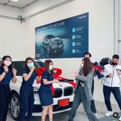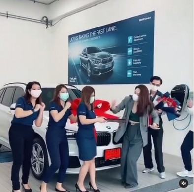 โดย นุ้ย สุจิรา โพสต์คลิปบรรยากาศตอนรับรถป้ายแดงให้คุณพ่อ พร้อมทั้งเขียนแคปชั่น “ไม่กล้าหยิบกุญแจเลยอ่ะ CF ปุ๊บโควิดมาปั๊บ ในขณะที่งานนั้นต้องเลื่อนแต่ค่างวดตรงเวลาเชียว #ทำทุกงานเราไม่บ่น #ของขวัญคริสต์มาส #เพื่อพ่อ #แม่สะดวกทุกที่ #เมื่อจังหวะมา #พนักงานน่ารัก #มิติใหม่การรับรถ”