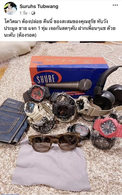 "โควิดมา ต้องปล่อย คืนนี้ ของสะสมของคุณสุรัช ทับวัง ประมูล ขาย แจก 1 ทุ่ม เจอกันสดๆคับ ฝากเพื่อนๆแช ด้วยนะคับ (ต้องรอด)"