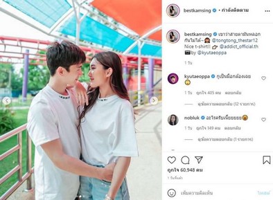 ล่าสุด ทั้งคู่ยังโพสต์ภาพเสื้อคู่โมเมนต์หวานจนเพื่อนๆในวงการบันเทิงและแฟนคลับแห่คอมเมนต์สนั่น โดยสาวติช่า ก็เข้ามาคอมเมนต์ถามด้วยว่า “อะไร ยังไง” ซึ่งสาวแบสท์ ก็เข้ามาคอมเมนต์ตอบด้วยว่า “@kantichachumma ตอบไม่ถูกเล๊ยย”