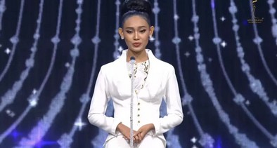 ก่อนจะถึงช่วงสำคัญมากๆ กับการตอบคำถาม พิธีกรเชิญ ฮาน เลย์ มิสแกรนด์เมียนมา Miss Grand MYANMAR ออกมากล่าวสุนทรพจน์ แสดงจุดยืนตามคอนเซปต์ของเวที มิสแกรนด์อินเตอร์เนชั่นแนล ยุติสงครามและความรุนแรง STOP THE WAR & VIOLENCE หลังจากทหารพม่าได้ใช้ความรุนแรงในทุกรูปแบบปราบประชาชนมาตลอด โดยนางงามพม่า ได้วิงวอนขอความสงบ จงเกิดขึ้นที่ประเทศพม่าอีกครั้ง พร้อมกับร้องเพลงที่มีความหมายกินใจอย่างแรง Heal The World